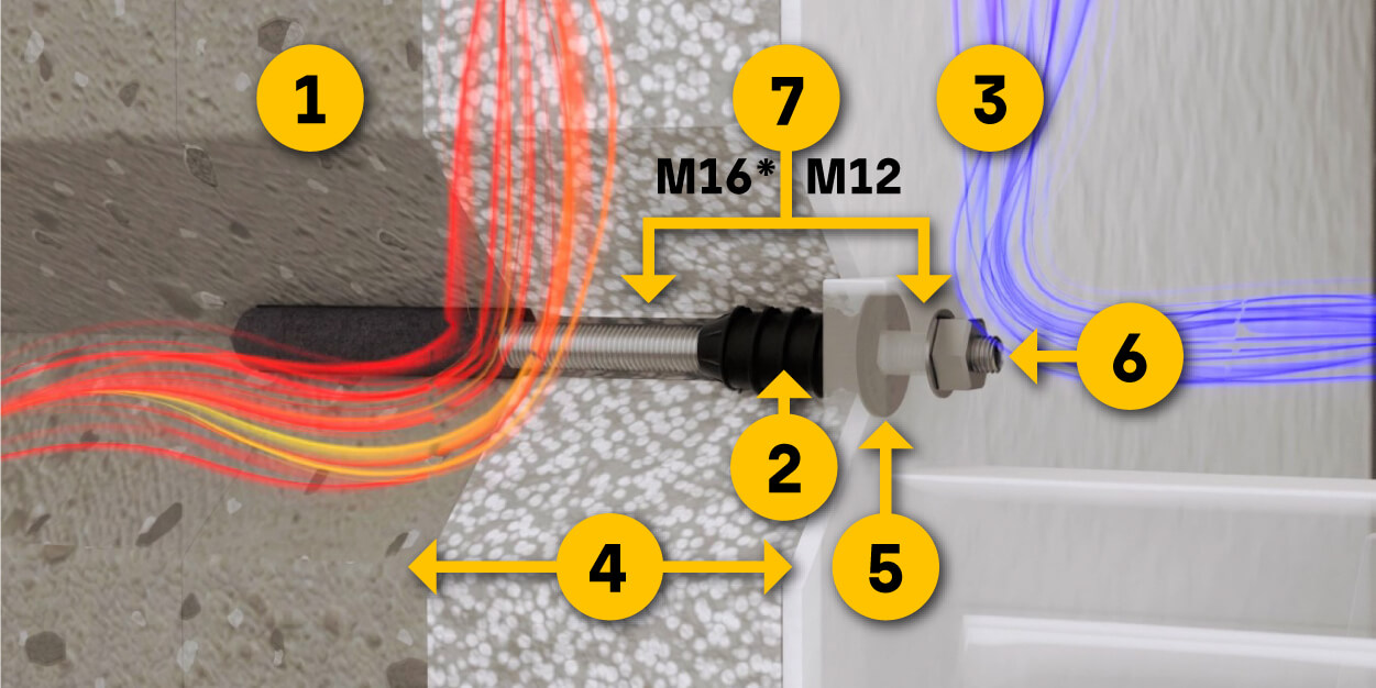 Rovnako ako ResiTHERM® 16, aj ResiTHERM® 12 má certifikát ETA, je odolný proti dažďu podľa DIN EN 1027 a rýchlo sa inštaluje. Tieto dva inovatívne produkty sa líšia priemerom závitovej tyče - M12 pre ResiTHERM® 12 na rozdiel od väčšej závitovej tyče M16 pre ResiTHERM® 16.